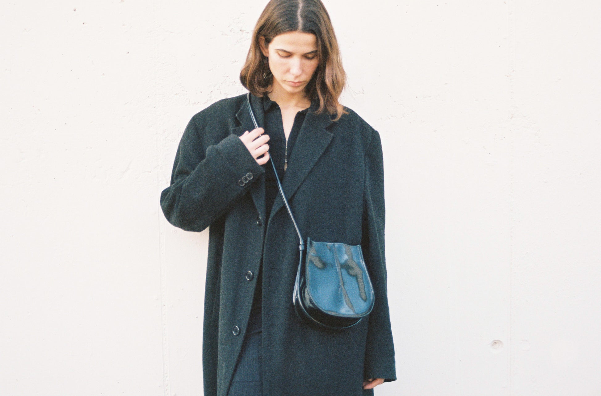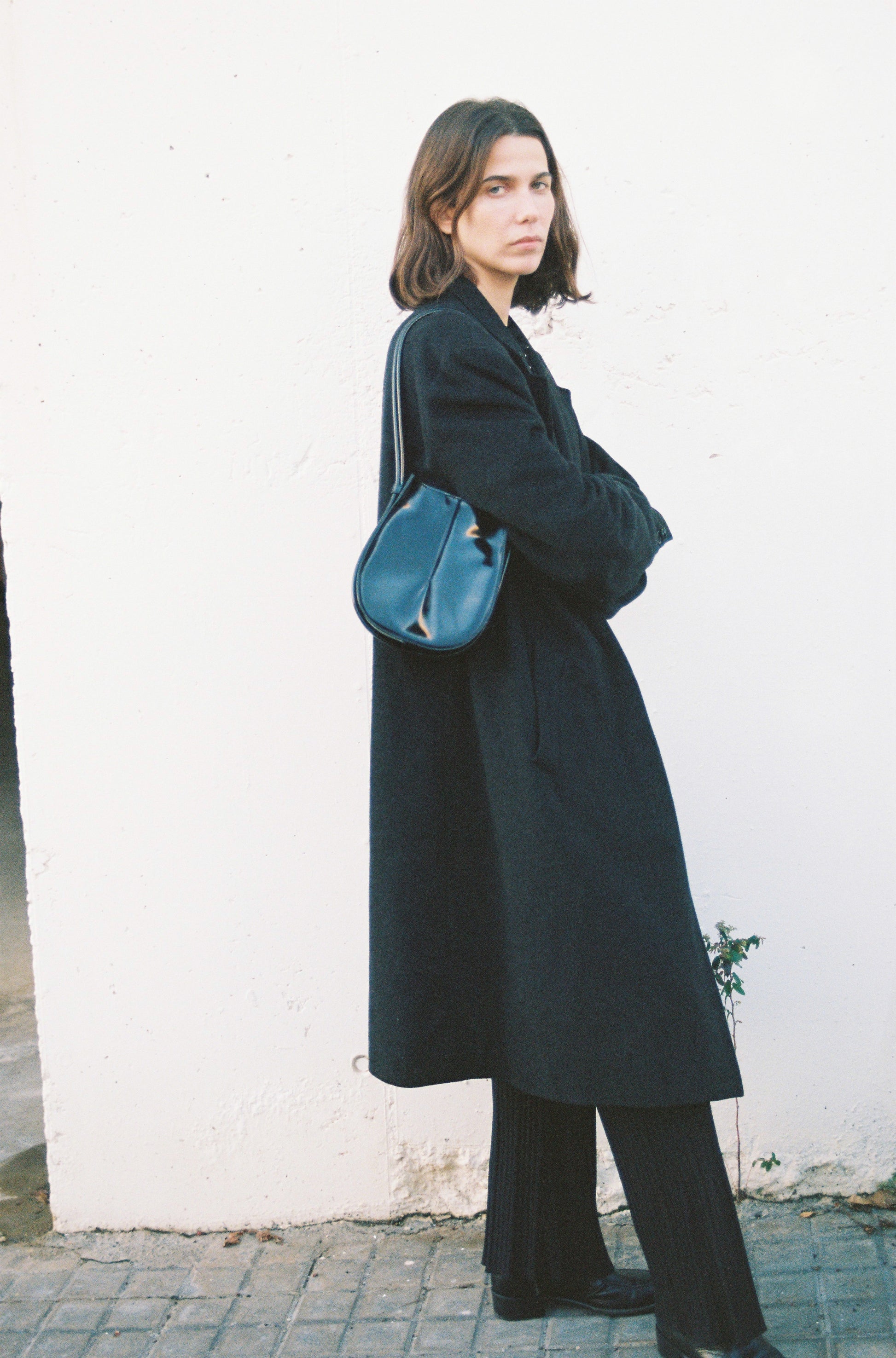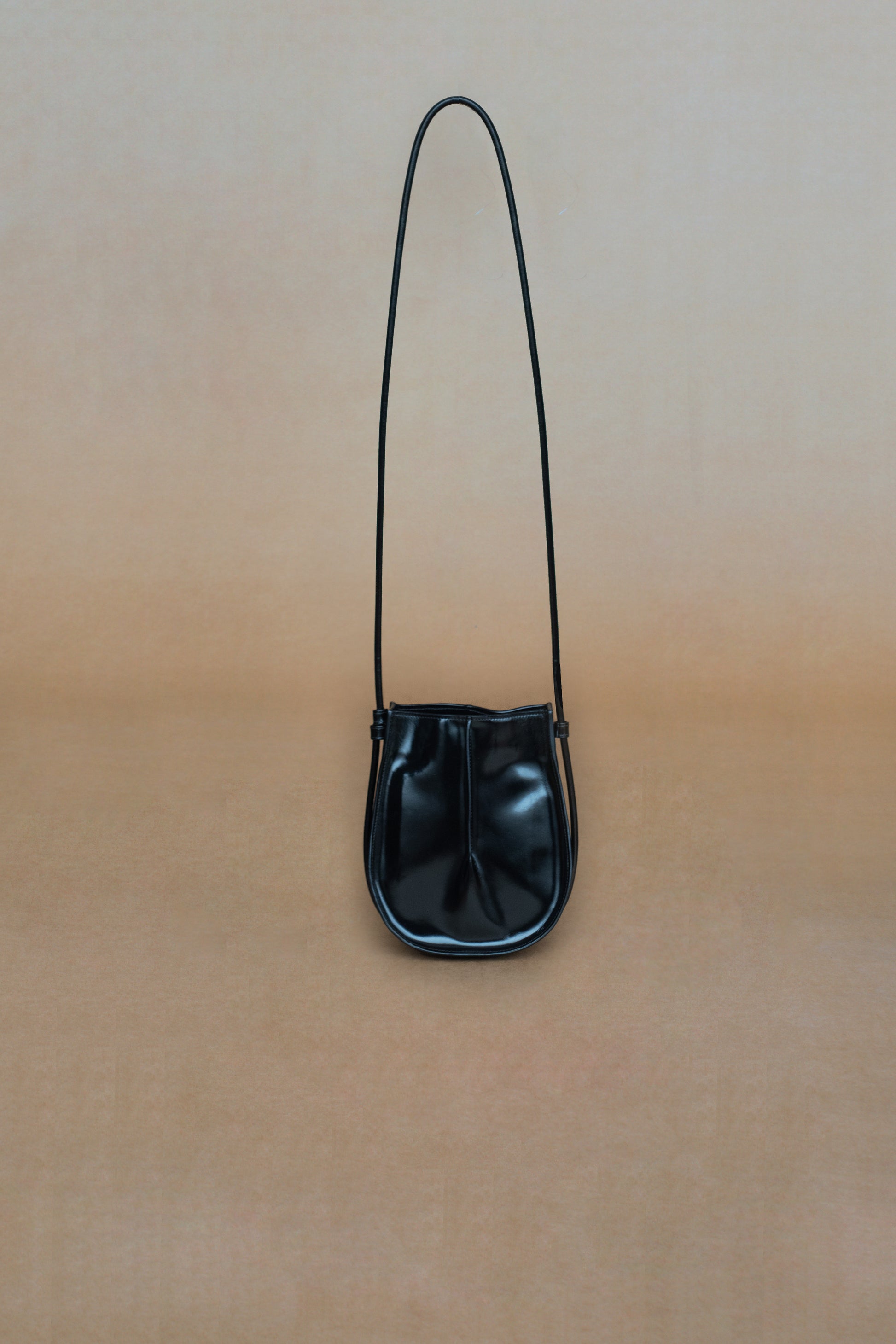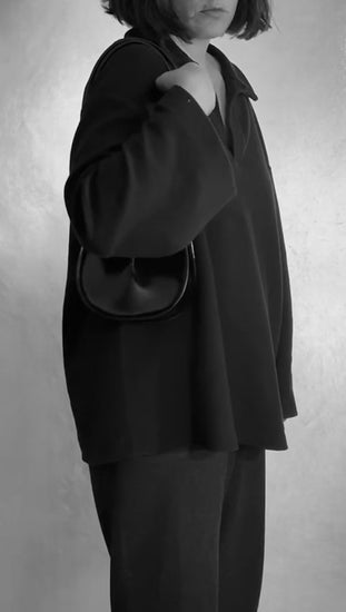 El volumen se construye a partir de la inversión del pliegue, generando un vacío que define la forma y acompaña el plano de brillos y sombras de la piel. Su tamaño pequeño permite llevar lo esencial con ligereza.